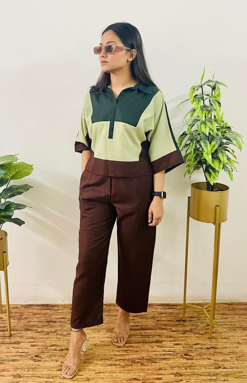 Material- khadi-Cotton Co-ordsFlaunt the top with this flared pants, just in time for summer - sprawling in the effortless yet structured fit, Be it a girls brunch or a feast, this co-ord set is easy and the perfect fit for summers!