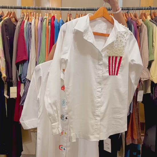 Lend posh style to your modern day wardrobe by investing in this COTTON embroidered shirt.It is enhanced with a fiery hued embellished motif.