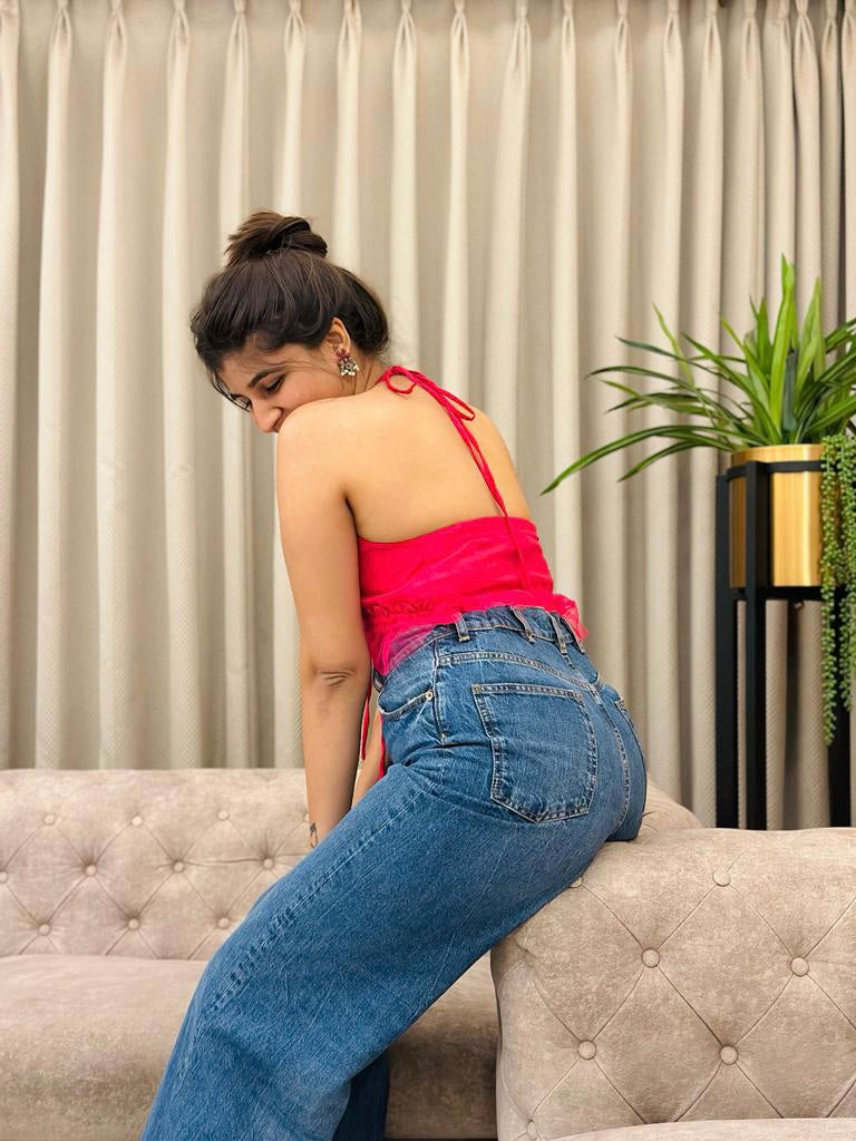 Turn up the heat this party season with this stunning hot pink crop top. Featuring this beautiful top, this is a must-have in the wardrobe!