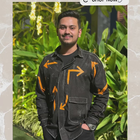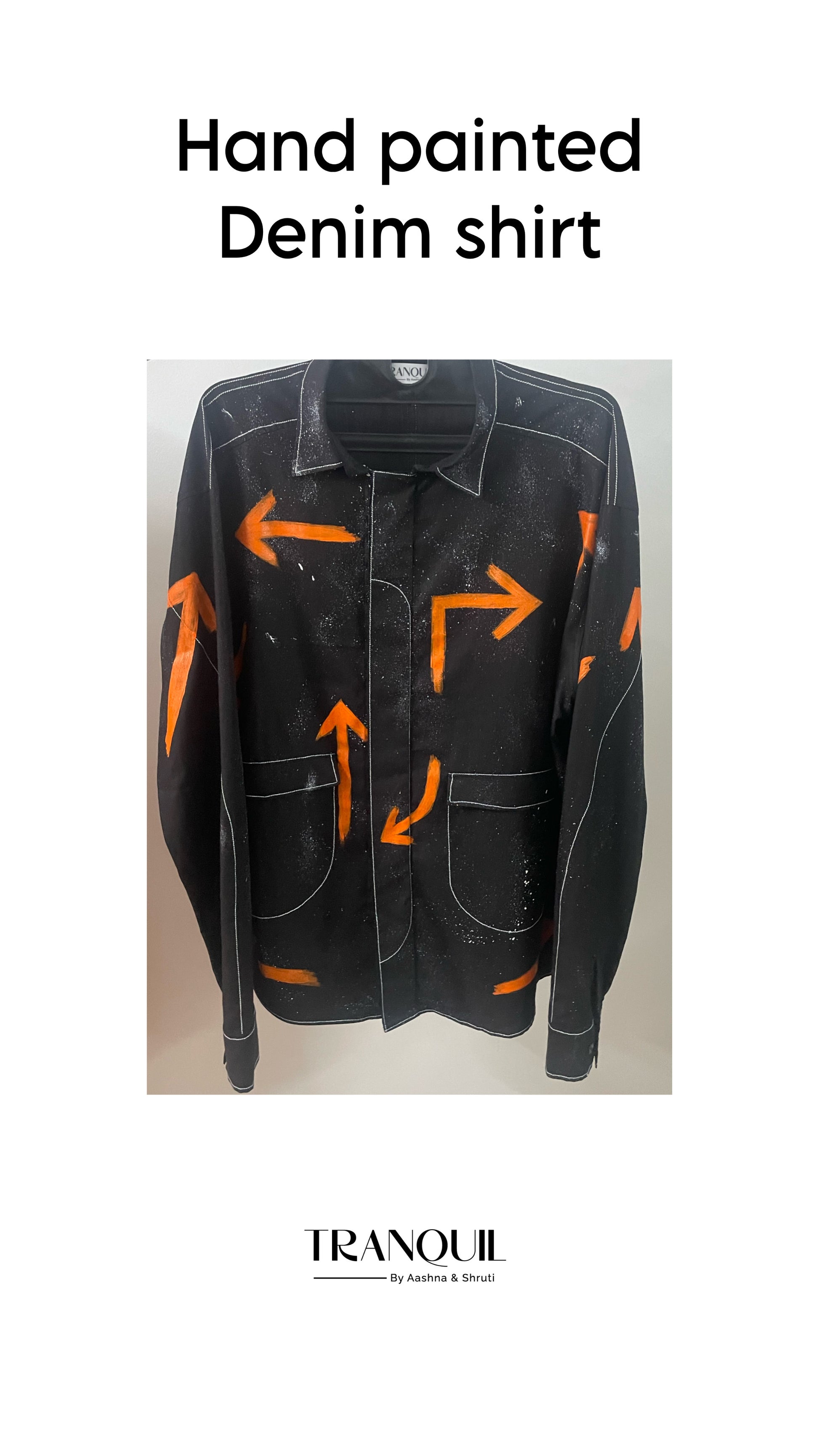 Hand painted denim shirt 🔥There is nothing more luxurious than being engulfed by the light on a starry night in our “HAND PAINTED SHIRT” ⚡Give your wardrobe an electric twist with this shirt!