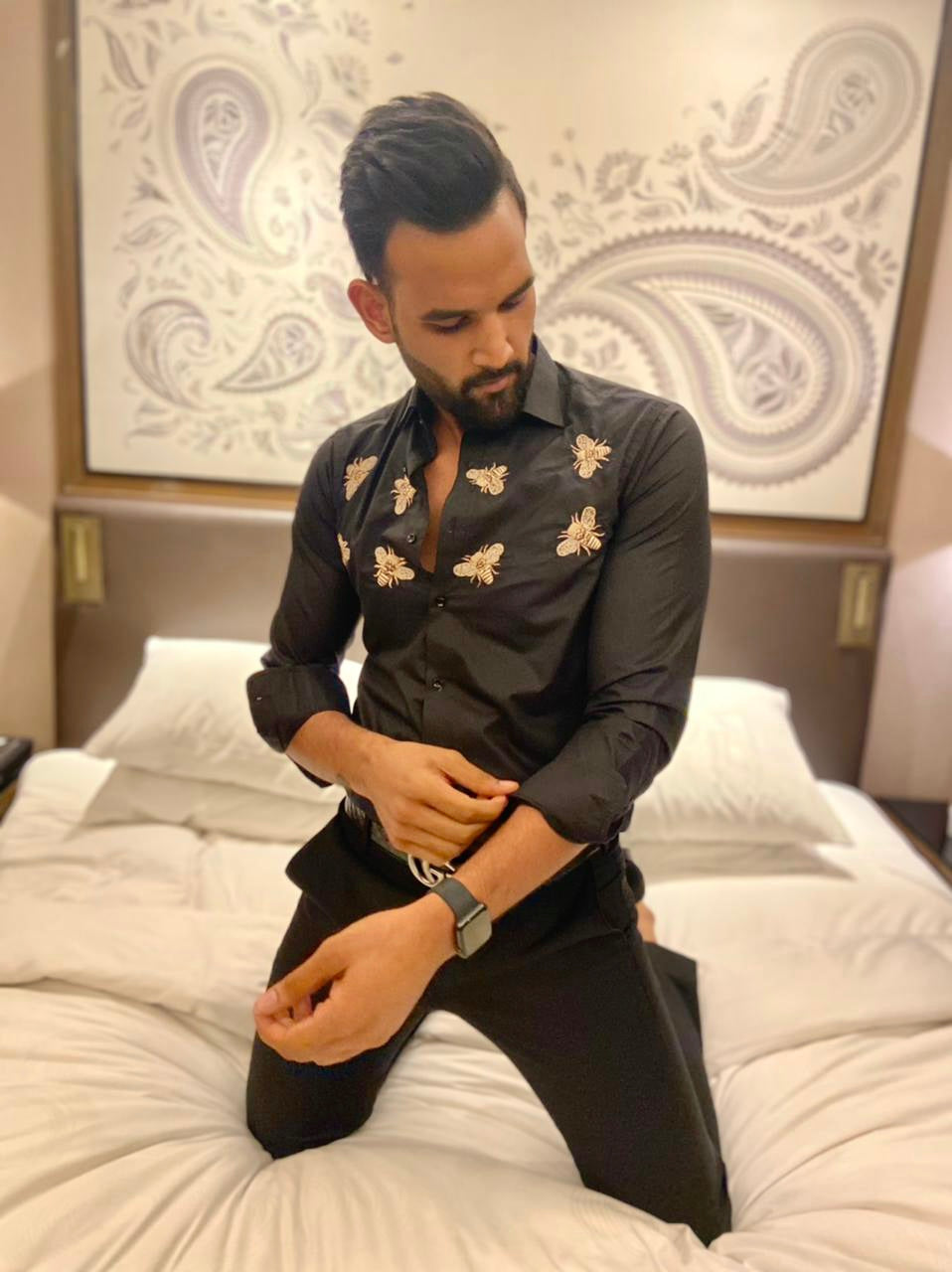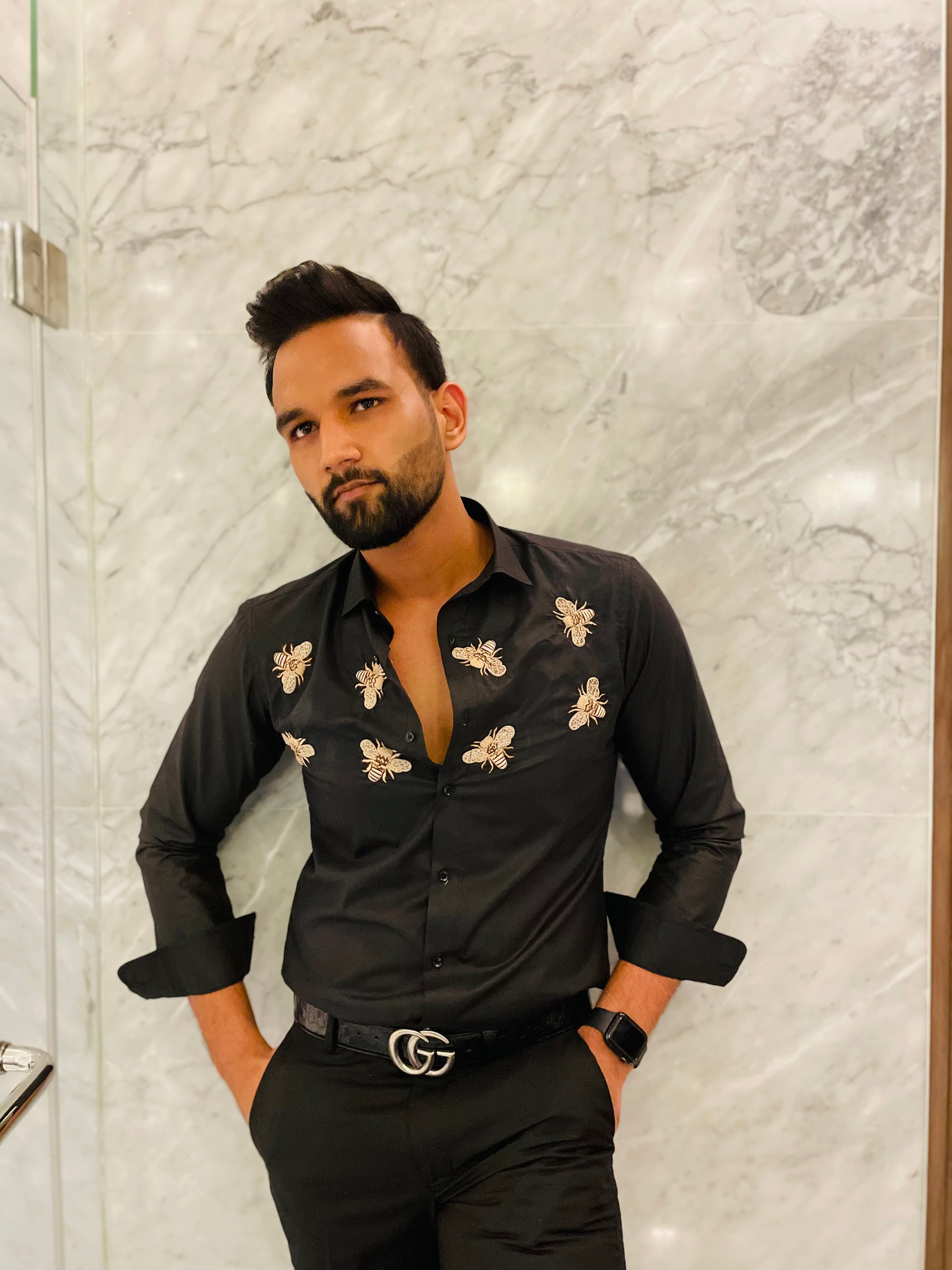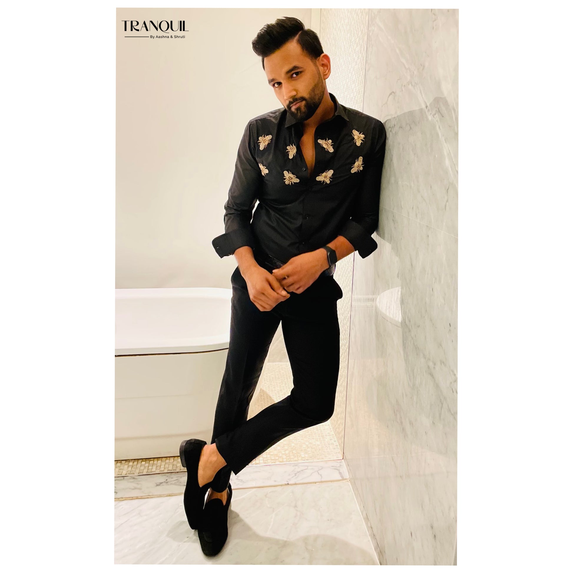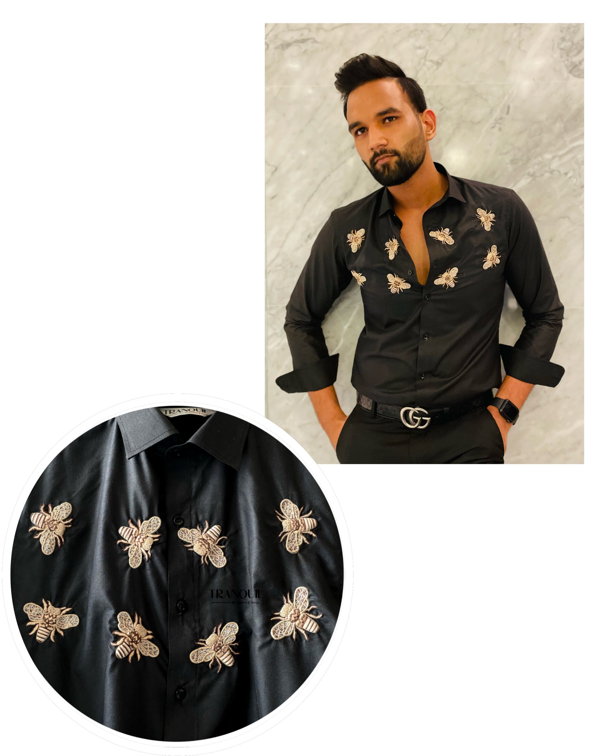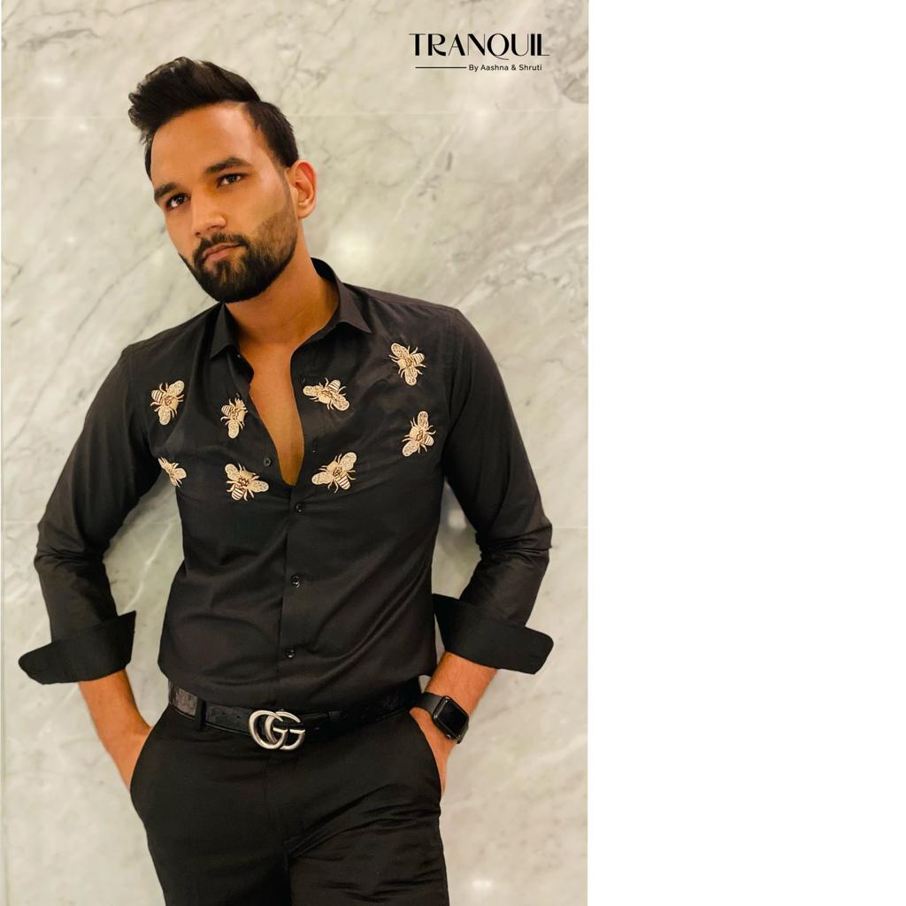 Lend posh style to your modern day wardrobe by investing in this Hand embroidered shirt.It is enhanced with a fiery hued embellished motif.